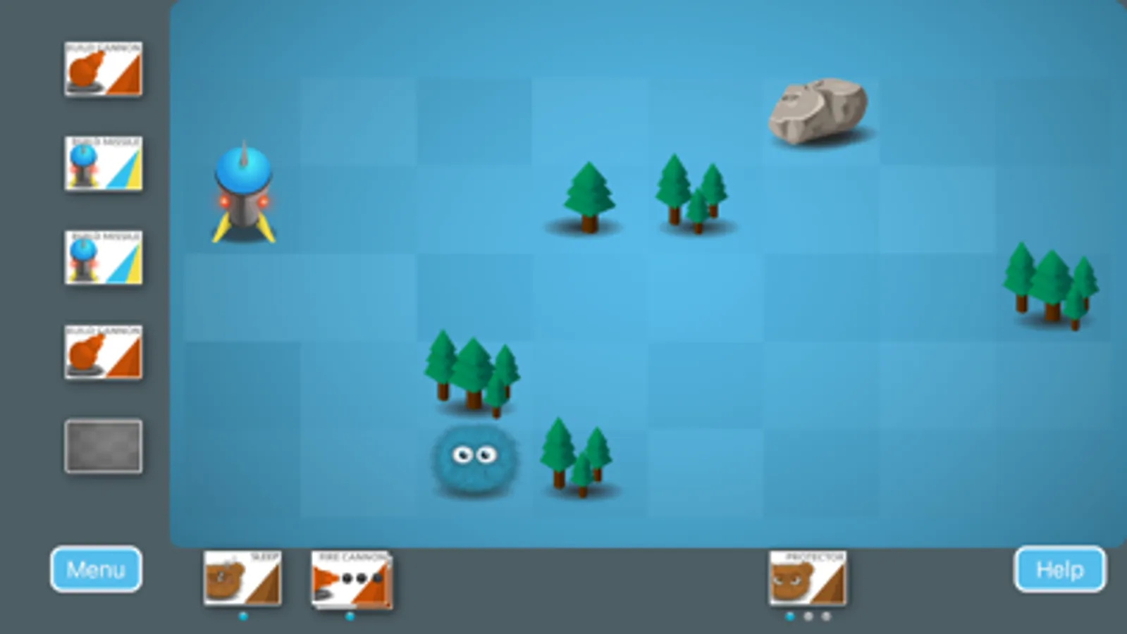 A turn based strategy game in which you collect cards to build missiles, cannons, bushes, and protectors.
