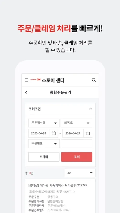 주문확인 및 발송, 클레임 처리를 할 수 있습니다.