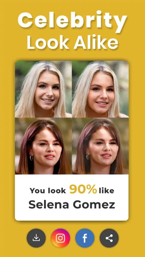 What celebrity do you look like? Simply download “Celeb Look Alike”, Take or upload a selfie and within a few seconds, you will get your celebrity look-alike results. Which famous person do you look alike?