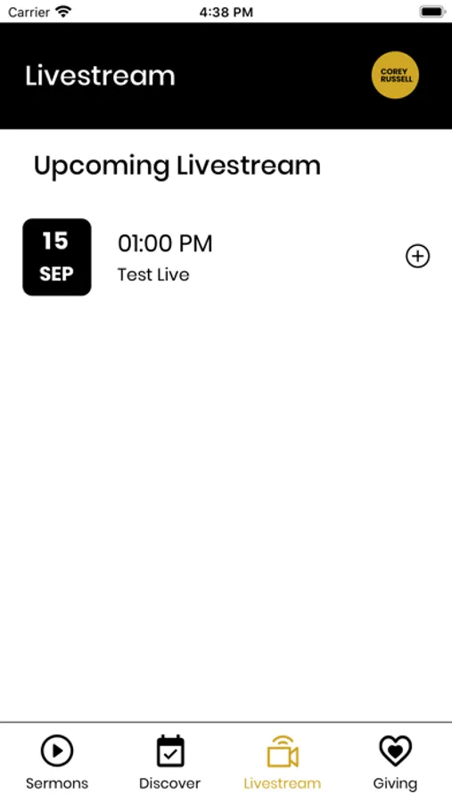 * Corey Russell app lets you keep track of all upcoming livestreams and add upcoming events to your calendar.