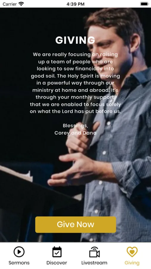 * Give anytime and from anywhere through the custom In-app Giving.
