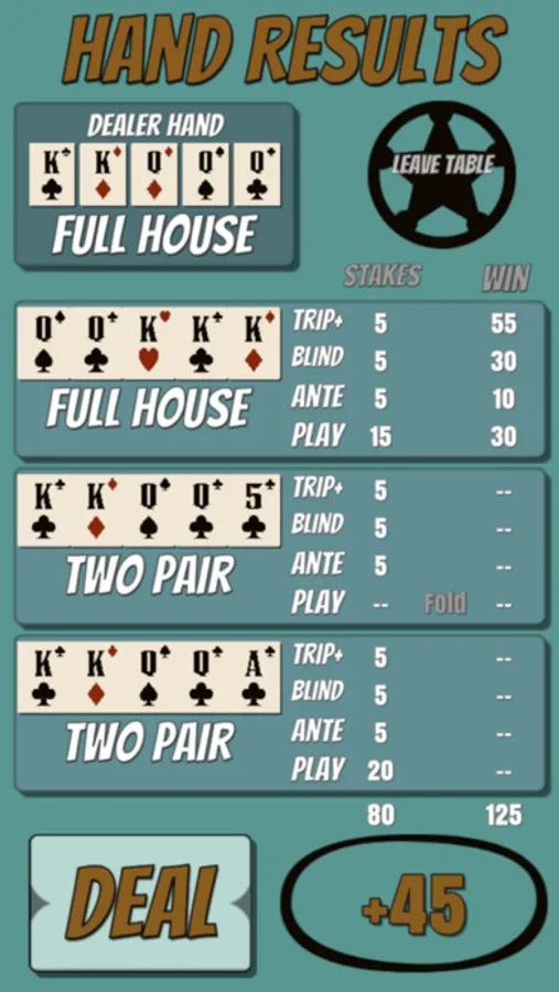 * Play up to 3 hands per deal.