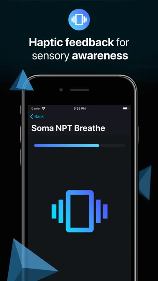 Soma NPT Breathe is designed to combine the effective practise of box breathing with the assistance of binaural beats and haptic feedback options to provide a tri-factor in recovery protocols, stress reduction and mental performance enhancement.
