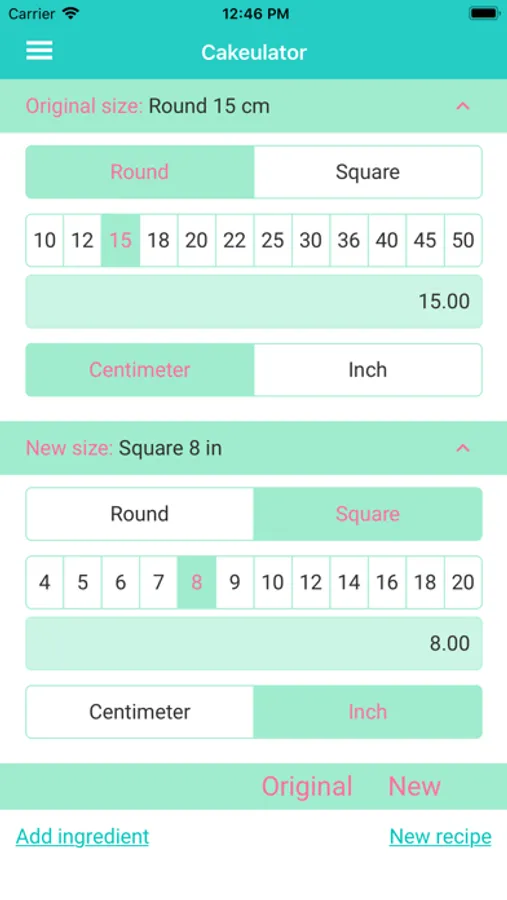 Cakeulator helps you scale up or down a recipe. Just type in the original pan size and the pan size you would like your cake to be. Besides converting measurements, it supports converting from round to square pans.