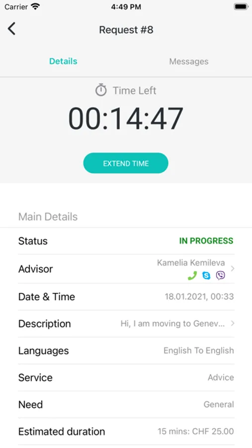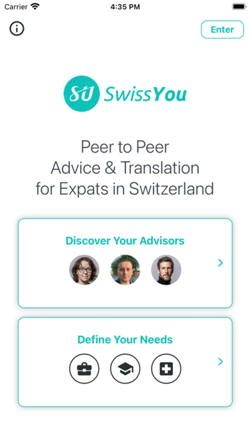Our Advisors are either private individuals who want to share their experience and knowledge of Switzerland or qualified professionals.Select your needs from a menu of issues proposed by the App. Obtain an Advisor on the spot. You can ‘fast-track’ translation if you only need translation. The App can match you with an available Advisor.