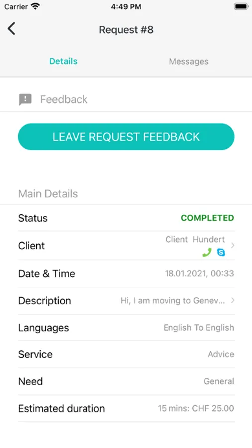 All payments and communications are handled directly through the App. Payment with a pre-registered credit card is smooth and straightforward.If you have a problem finding an appropriate Advisor, email info@swissyou.ch for help.