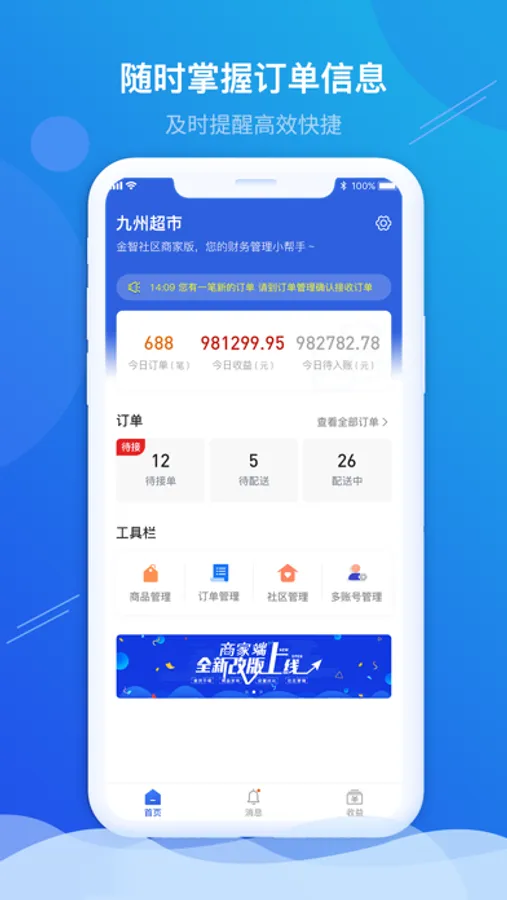 金智社区官方推出的手机版店铺管理平台,1分钟掌握店铺动态,1站式搞定日常经营。