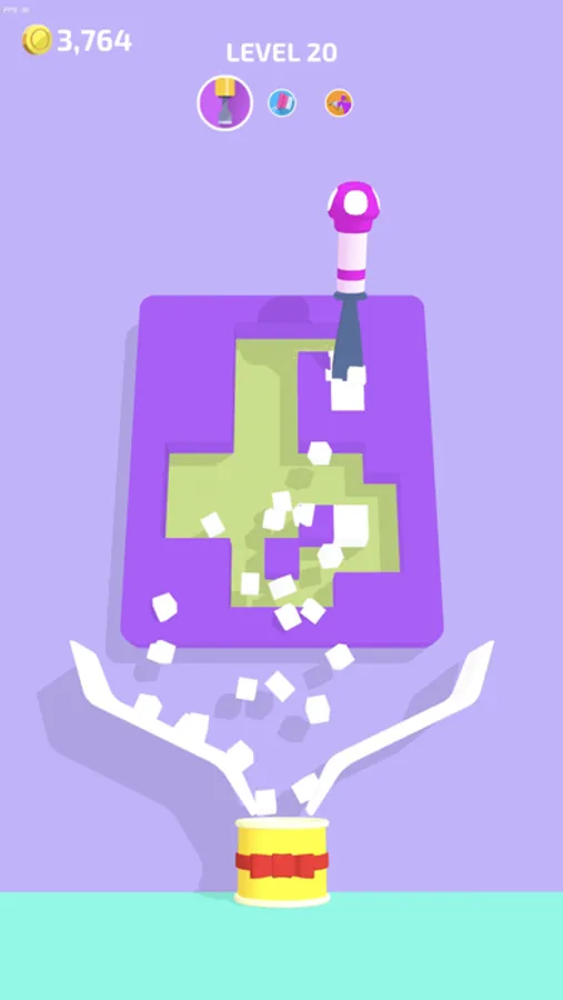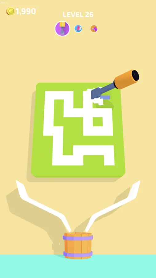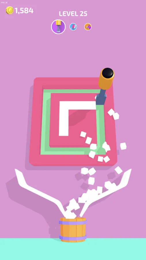Use the chisel to clear the mazes. Collect the cubes in the bucket below.