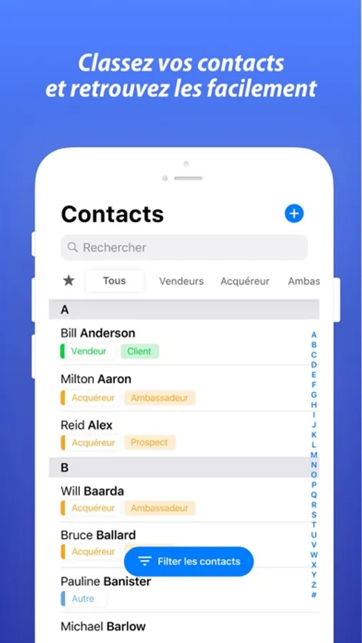Notre système de classement des contacts vous permet de les retrouver en quelques secondes.