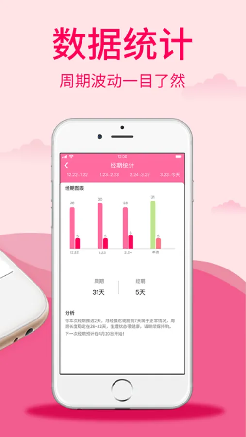 【预测服务】根据记录智能预测下一次经期和排卵日,提前2天提醒你做好准备,告别尴尬不出错。