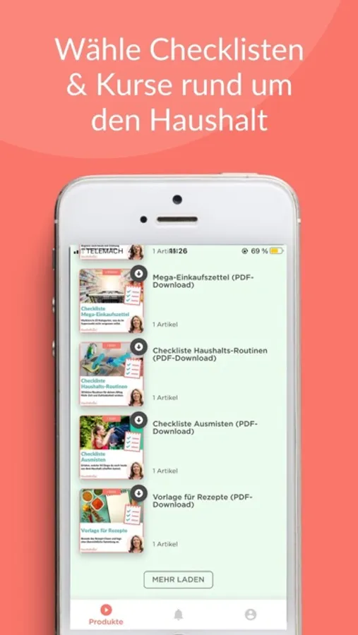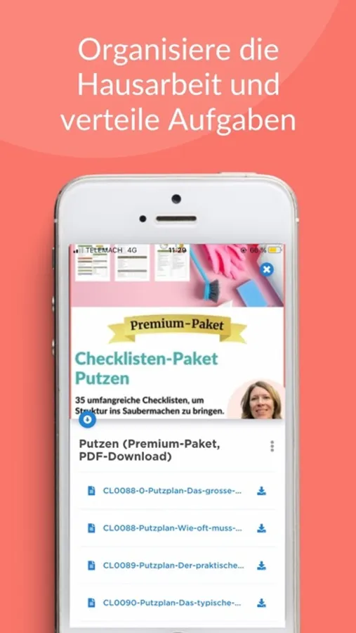 Mit der Haushaltsfee App hast du Zugang zu all deinen erworbenen Online-Produkten (Checklisten und Online-Kurse).