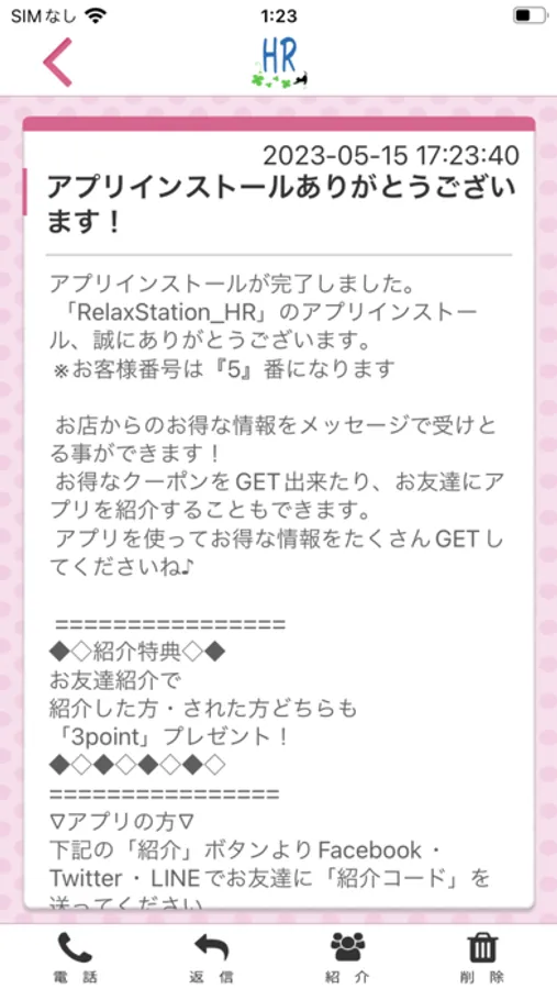 HRのアプリをSNSを通じてお友達に紹介する事ができます。