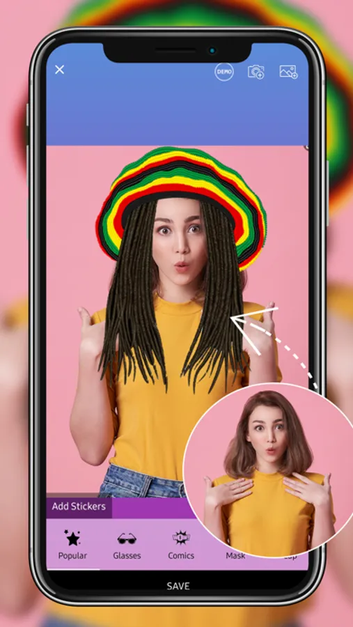 - With our latest technology of artificial intelligence AR & 3D effects, you can change your face mode by one single magical touch to different face modes such as happy, sad, angry, surprised, cool, smile, serious, or panic.