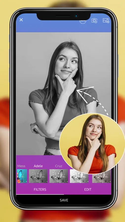 - A wide range of filter effects to transform your selfie or photo into an artwork, such as texture, sketch, rending, etc.