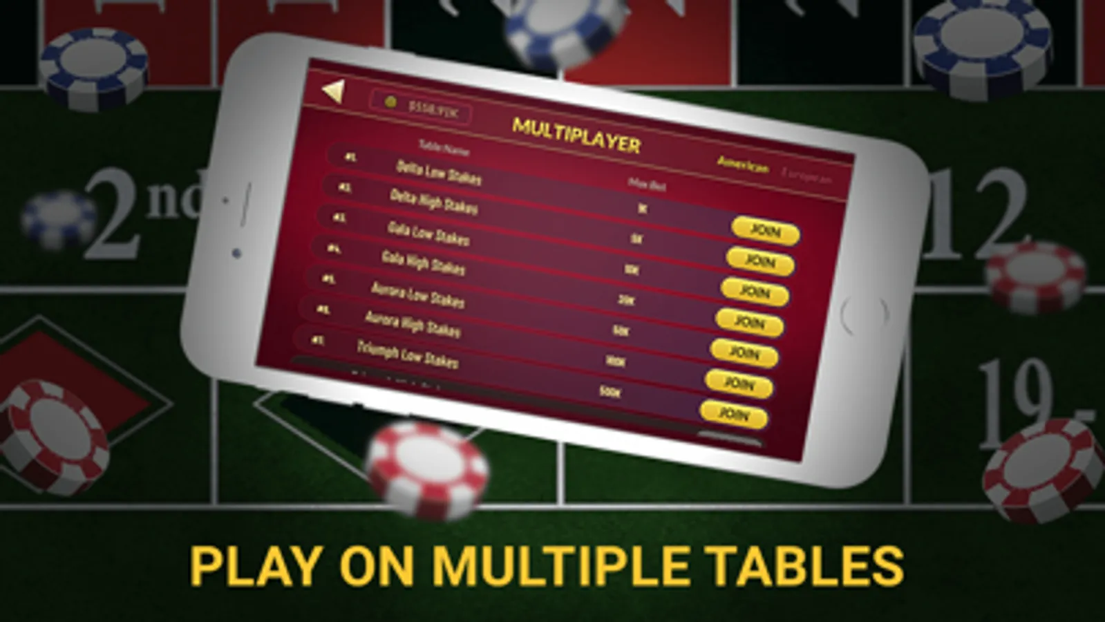 -- Multiplayer European style and American style , user friendly and attractive tables