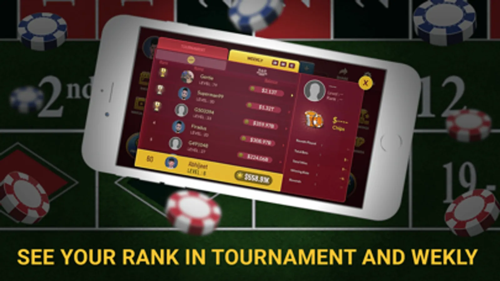 -- Multiple Levels to be achieved and unlock Higher tables with bonus chips