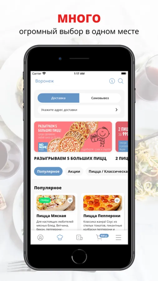 В NoName Pizza вы можете сделать заказ на бесплатную доставку по городу Воронежу пиццы, бургеров, суши, роллов, сетов, супов, салатов, десертов, напитков, свежевыжатых соков.