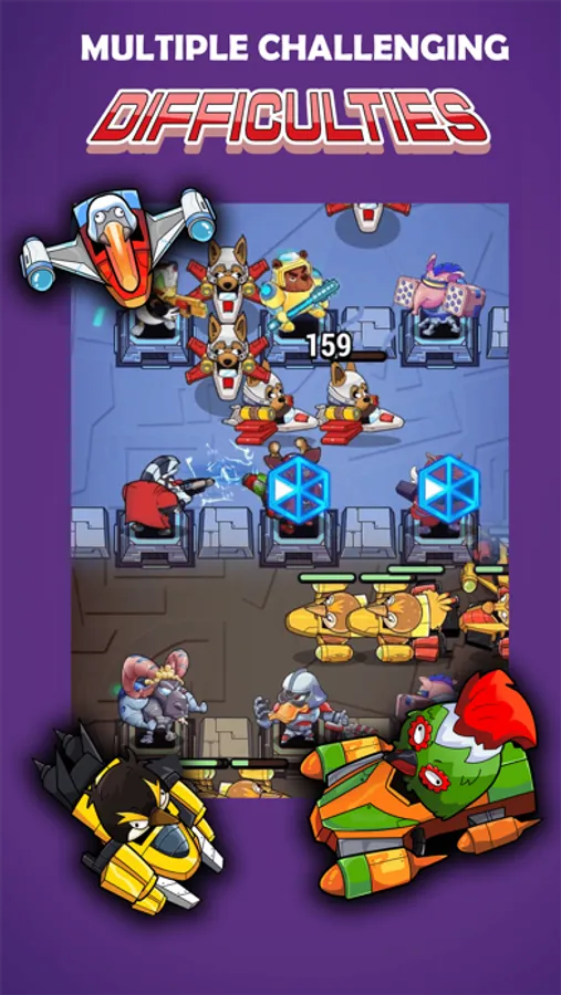 • Defeat different types of enemies and bosses to become the ruler of the galaxy