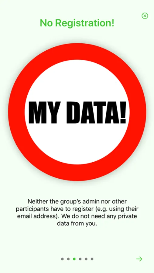 NO REGISTRATION: Neither the group’s admin nor other participants have to register (e.g. using their email address). We do not need any private data from you.