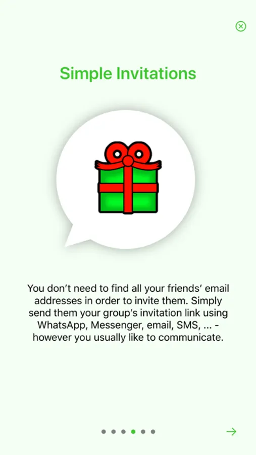SIMPLE INVITATIONS: You don’t need to find all your friends’ email addresses in order to invite them. Simply send them your group’s invitation link using WhatsApp, Messenger, email, SMS, ... - however you usually like to communicate.