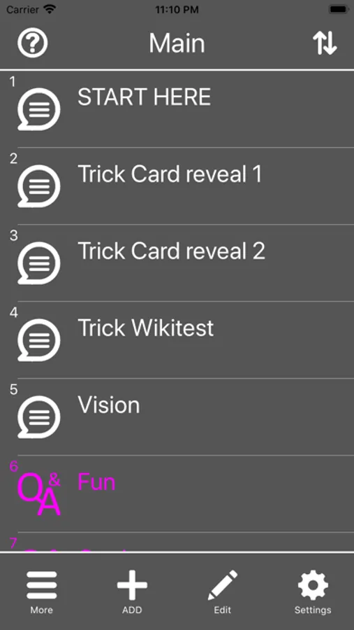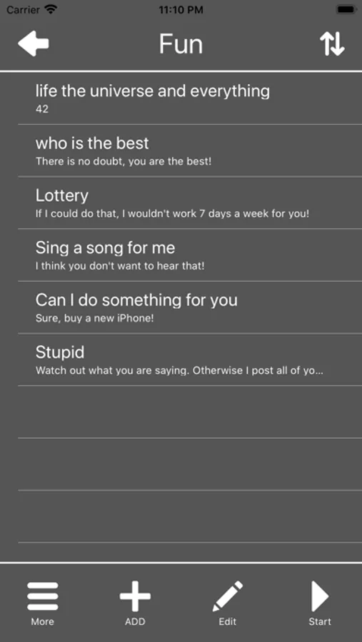 You can setup a predefined conversation with your iPhone. This can be used by performers or to generate a fun conversation. It also can be used by e.g. actors to work on their script.