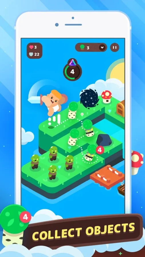 Collect resources, find gems, fight against enemies and overcome obstacles. Try to get to the boat, collecting the necessary amount of items on the island, and gain magical boosters to fight the enemies. Earn gems by collecting combinations of 10+ objects as well as defeated enemies and opened chests, collecting coins and spend your achieved points on special equipment and magic to overcome all kinds of dangers.