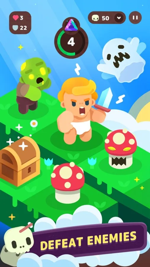 Battle against enemies, collect resources and discover Home Island! So, enjoy your odyssey of more than 40 levels of intense puzzle-battling madness and remember: with great combos come great gems.