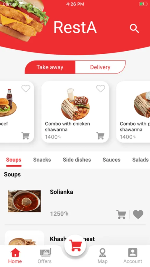 The customer can make an online order and make a payment through the application by attaching a non-cash method to his bank card or simply choose the cash payment option.