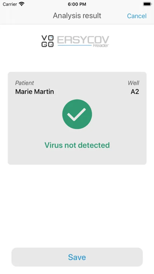 The VOGO EasyCOV-Reader application allows you to monitor the EasyCOV procedure, with digitization of results.