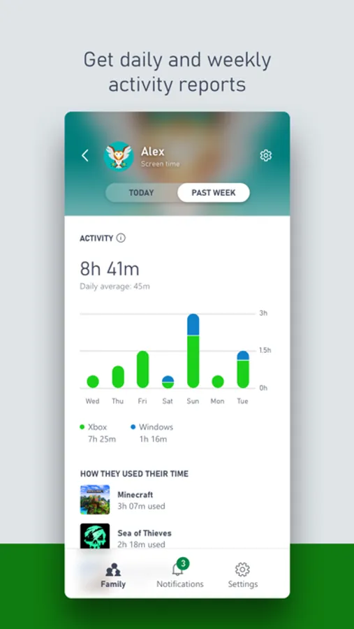 Game time now comes with more peace of mind with the Xbox Family Settings app. Easily manage your children’s activities on Xbox consoles and enable gaming options that are right for your family. Quickly get into the fun by adding your children to your family account in a snap. Set screen time, update content restrictions, and stay on top of incoming friend requests, all in real time.