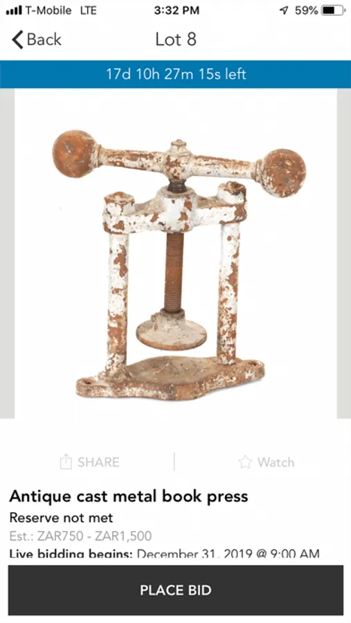 Bid live on our monthly auctions and browse the current & past catalogues. Old Johannesburg Warehouse Auctioneers is one of the leading Antiques, Art, Jewellery and Collectables auction houses in South Africa. Since 2014 we have been hosting monthly auctions in our vintage industrial warehouse in Selby, Johannesburg. We sell a wide variety of items including Antique, Period, Industrial & Designer Furniture, Fine South African and International Art, Collectables, Jewellery, Watches, Silver, Gold, Porcelain, Classic Cars, Motorcycles & Automobilia, Militaria, Vintage Toys and Comics, Coins, Vintage Wines, Carpets and Music Boxes. Being one of South Africa's largest auction houses we offer the following services on our OldJW Auctioneers App: •Quick online registration