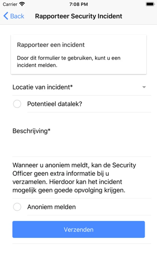 Uw collega's kunnen dan met deze app gemakkelijk incidenten bij u melden.