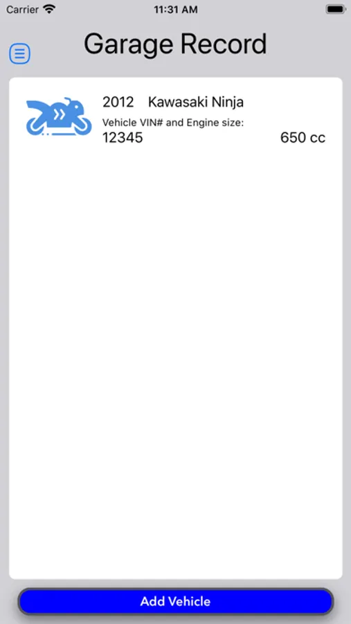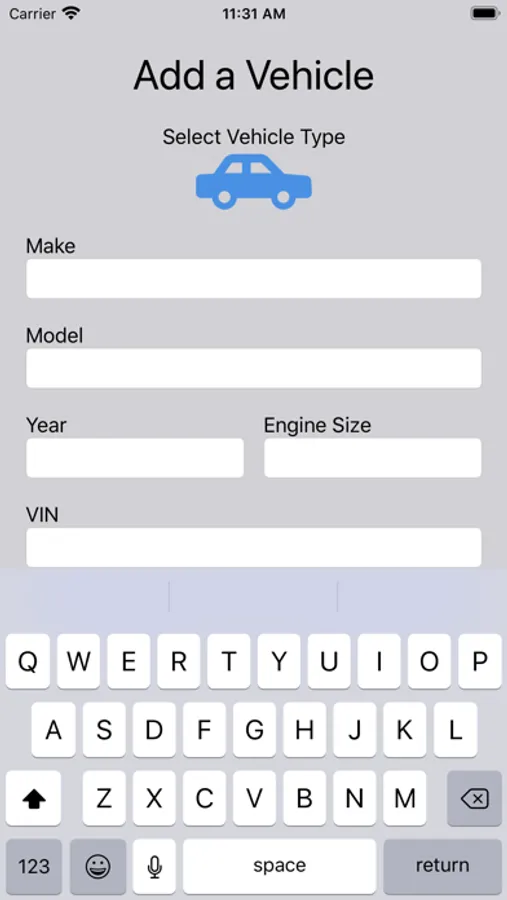 Create a vehicle record by tapping “Add Vehicle”. You can change the icon now by tapping the icon button at the top of the screen, or later by swiping right on the vehicle record.