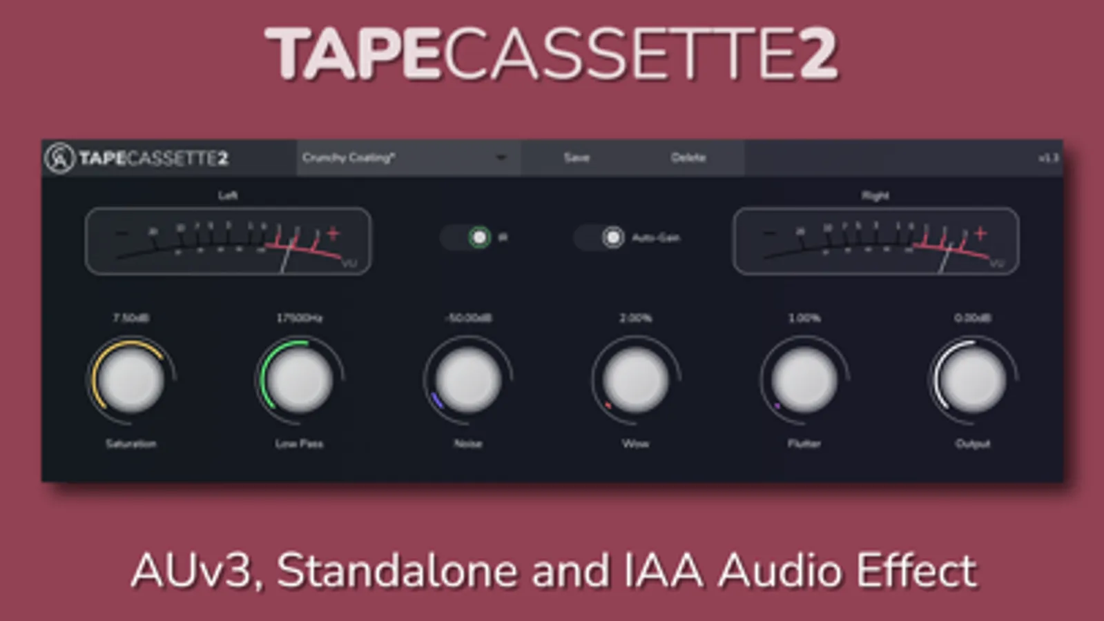 Tape Cassette 2 is both a stand-alone application as well as an AUv3 plugin, meaning it works within iOS and iPadOS hosts such as GarageBand.