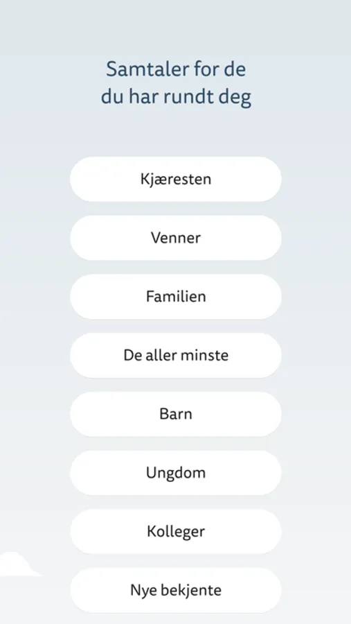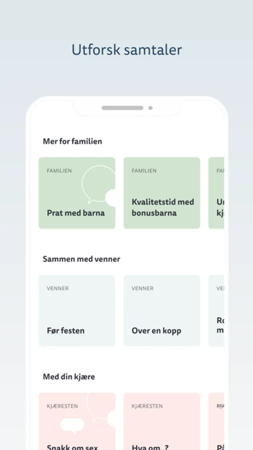 • Conversations for couples, family, friends, colleagues, youth, children and new acquaintances