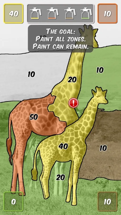 • To paint a zone, simply touch the zone and slide your finger towards a color in a corner!