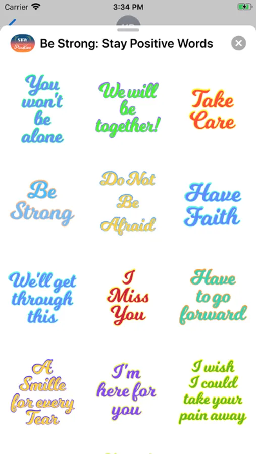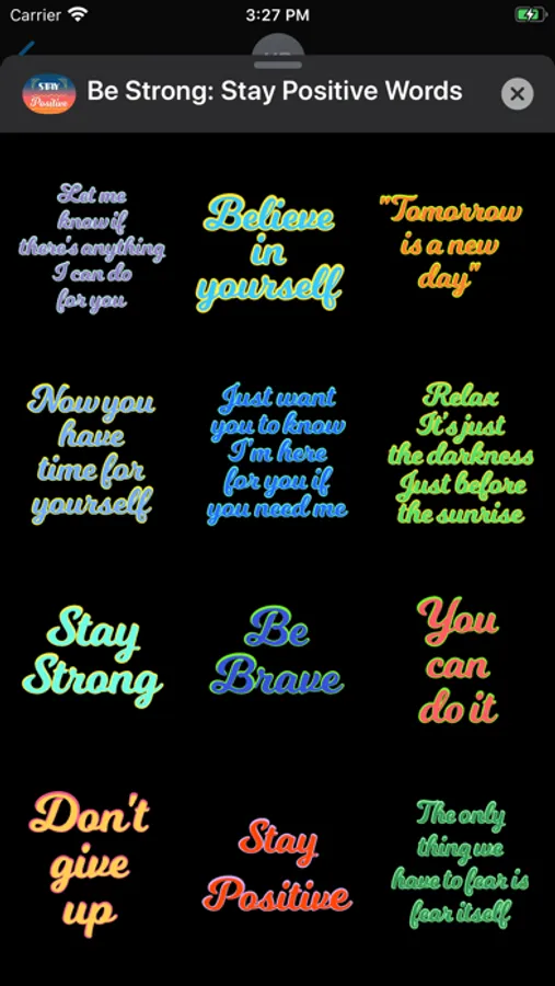 Share motivational, inspirational, famous or Positive Words with these stickers on your text messages, pics or other stickers.