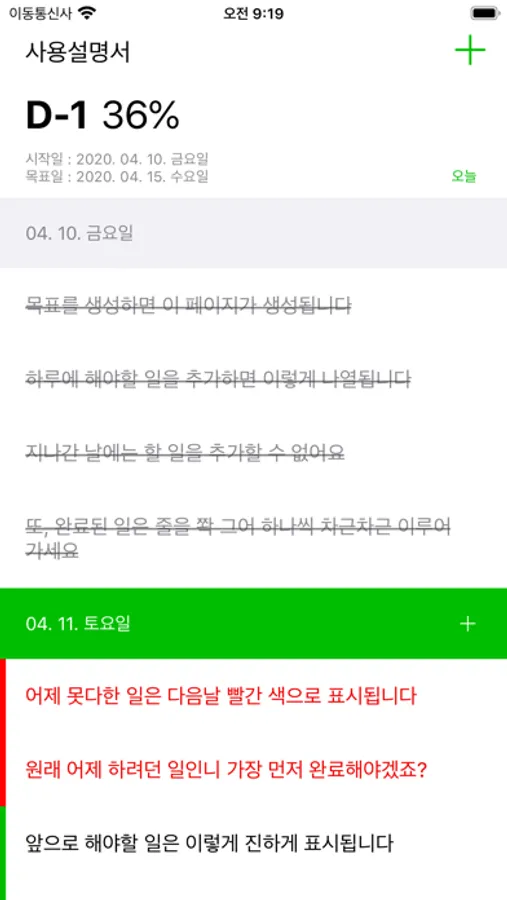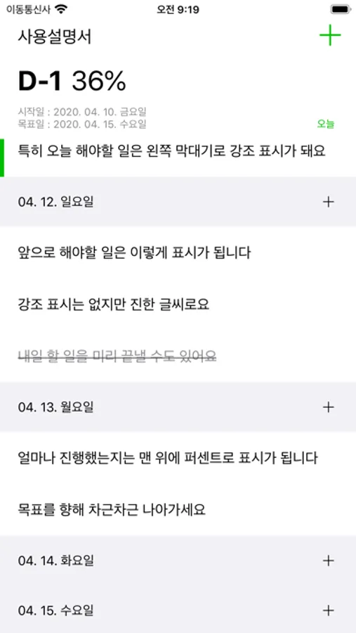 목표일까지 며칠이 남았는지 얼마나 진행되었는지 쉽고 간편하게 확인하세요.