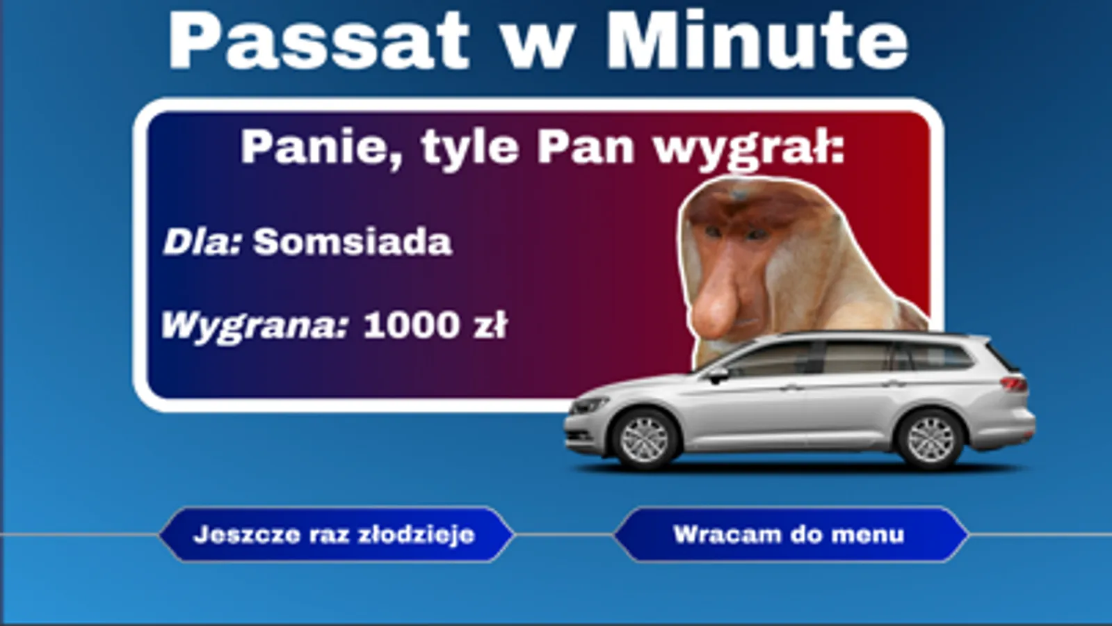 Na pierwszy rzut oka nie powinna ona sprawiać nikomu większych problemów,gdyż pytania na początku wydają się łatwe, które dotyczą przeważnie zachowań oraz tekstów Typowego Polaka. Jednak na półmetku rozrywki poziom trudności wzrasta i wygranie Passata tak, jak mogło się wydawać za proste do końca takie nie jest. Pytania są z różnych dziedzin, o różnym poziomie.Gra oczywiście nie ma na celu nikogo urazić oraz powstała w celach humorystycznych.