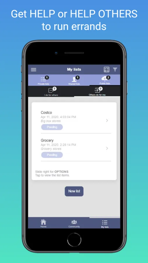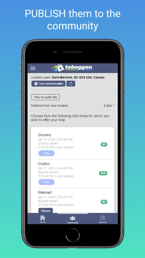 What distinguishes Toboggan from the other shopping lists management applications is its community-oriented features. This application binds together people who need a hand to run their errands and those who want to help others by running them.