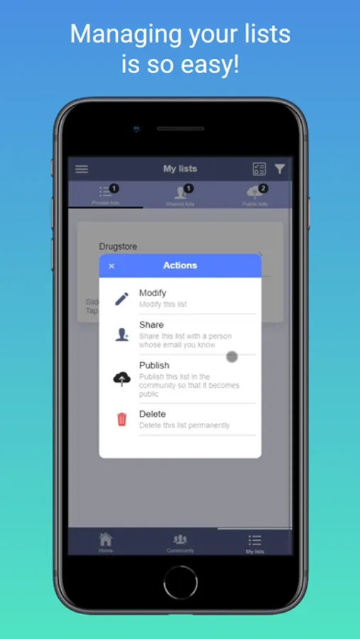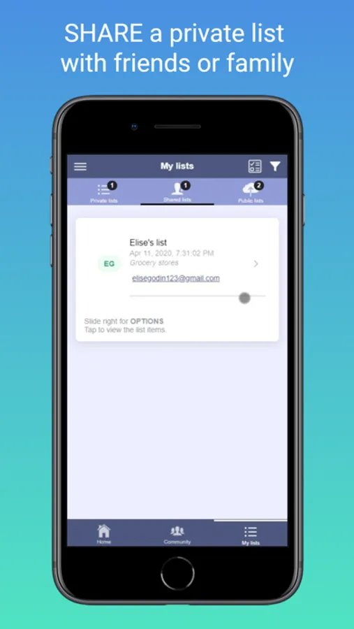 • collaborate with your relatives and friends on the same list, with the shared lists feature