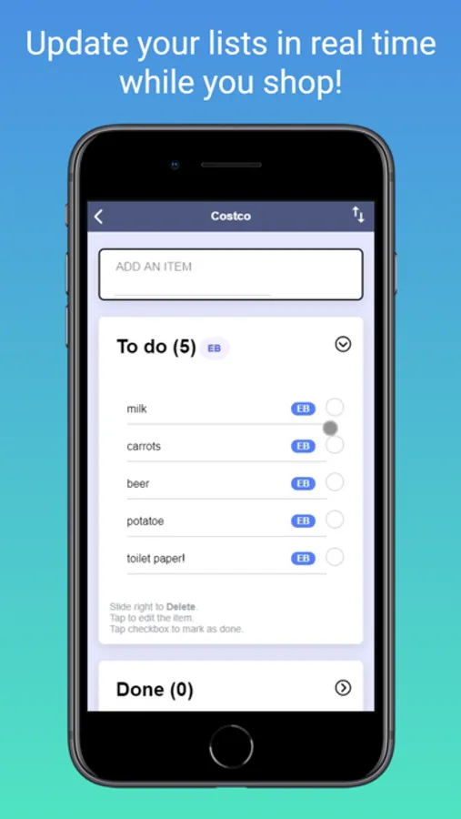 • update your lists in real time (modify, add, delete items even while you are shopping)