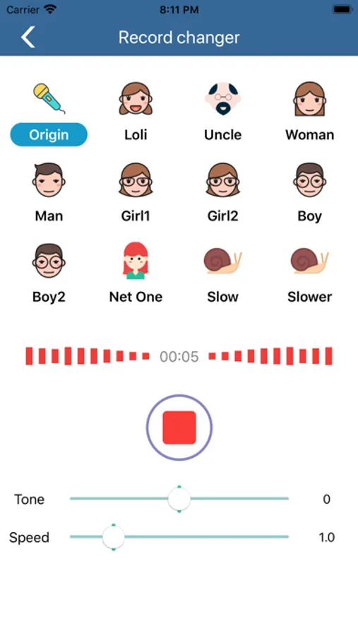 2 Recording voice change: record and change your voice at any time.