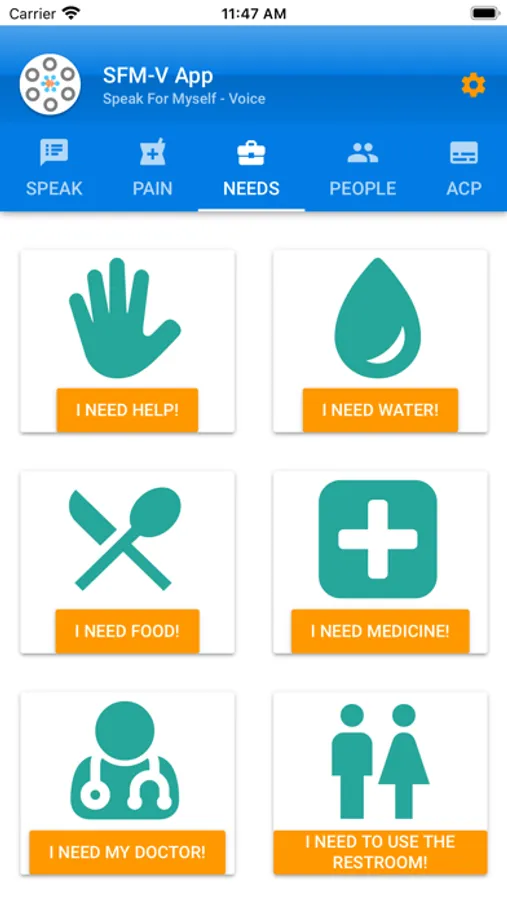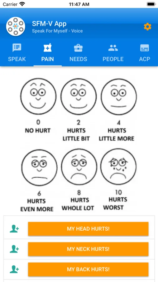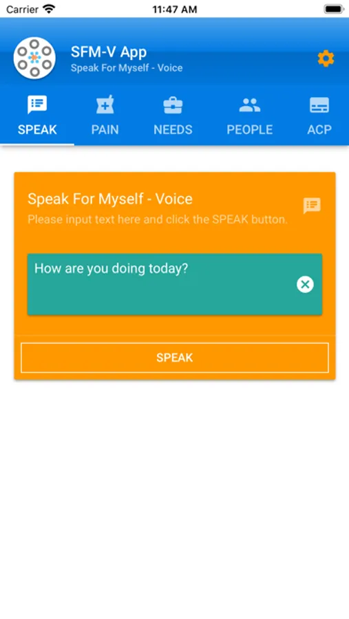 SFM-V is a communication app designed for patients who are unable to speak due to mechanical ventilation, tracheostomy, head and neck trauma, obstruction, or communication disabilities. SFM-V supports patient-provider communication and empowers patients through clarification of needs, preferences, and choices.