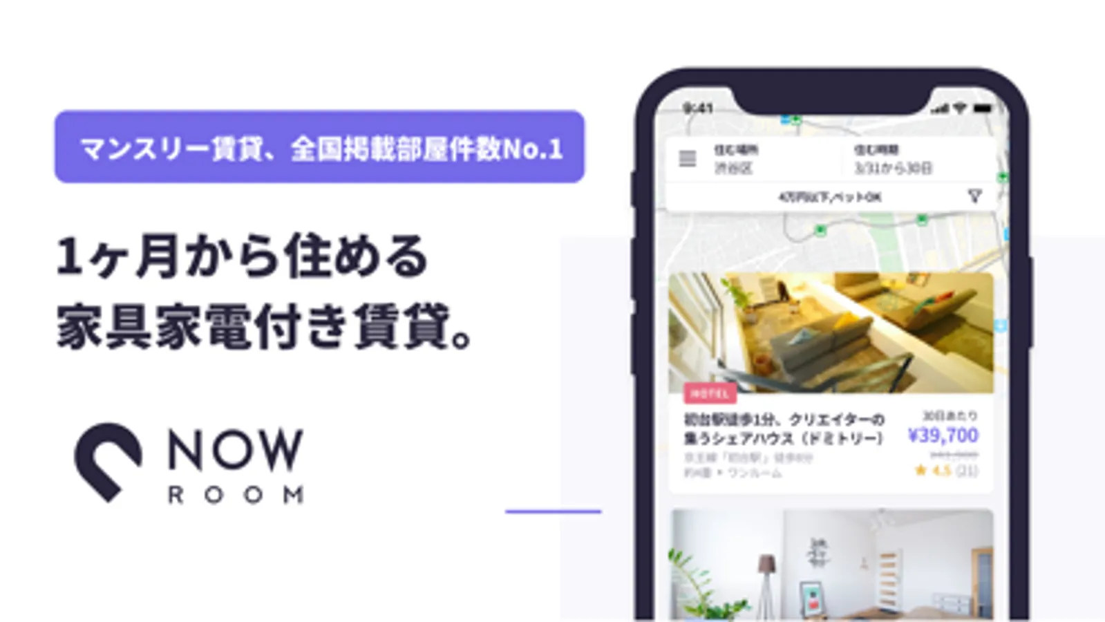 NOW ROOMは会員登録後に3ステップで入居可能。