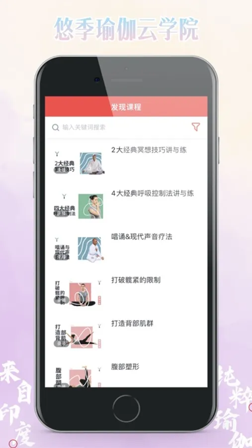 【空中课堂】为瑜伽爱好者准备了近千种选择。涵盖体式、呼吸控制法、冥想、清洁法、瑜伽理论、阿育吠陀等全方位的课程。