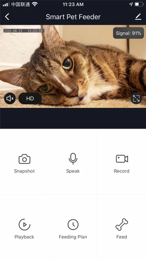 Support monitoring real-time video captured by the camera on the feeder remotely, and support two-way audio communication with your pets.