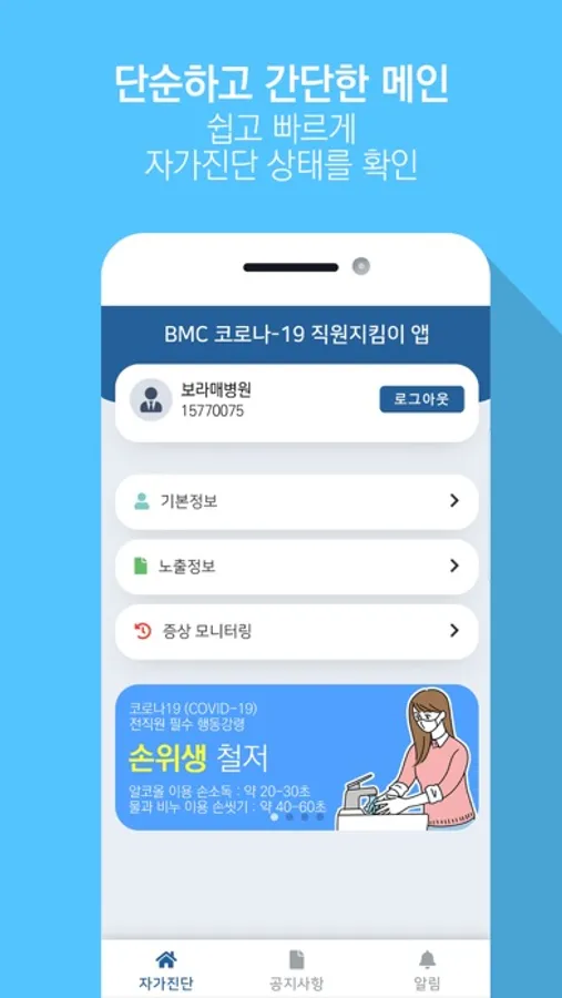 BMC 코로나-19 직원지킴이 앱 Screenshots