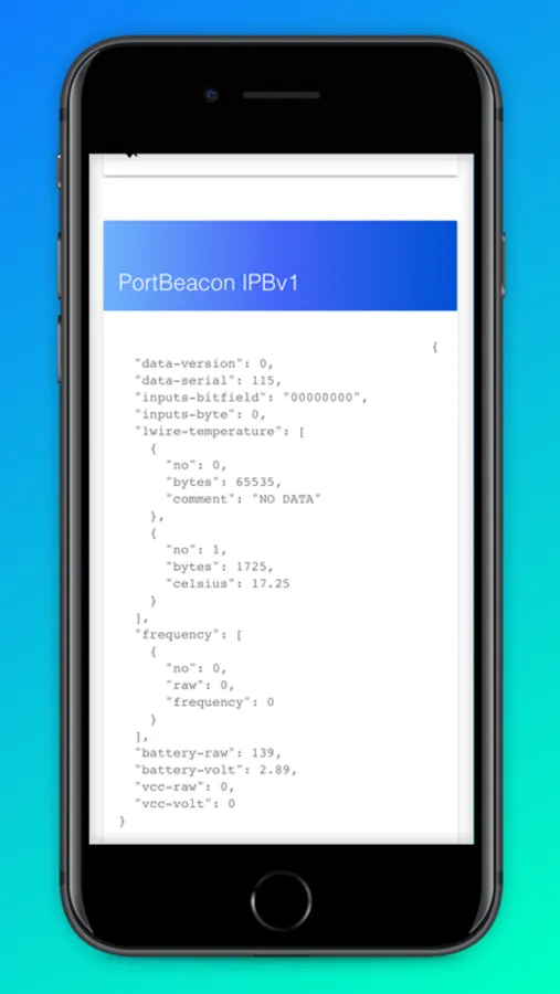 This app scans for PortBeacons and shows each and every measurement data they provide for your information, like digital inputs, temperature, battery and vcc voltages, etc.