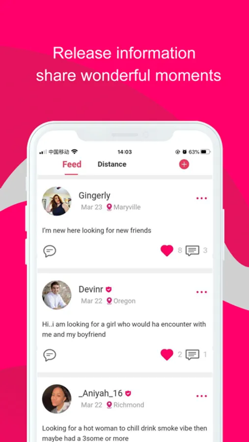 Feed: Members share your contact information,Share pictures and dating information, record every wonderful moment